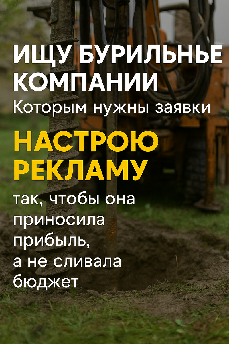 Вы занимаетесь бурением скважин, но количество заявок нестабильное? Вкладываете 50–100 тысяч в рекламу, а клиентов почти нет? Или работаете только по сарафану и хотите выстроить стабильный поток заявок? Я — маркетолог, который приносит не клики, а заявки. Сейчас я ищу 3–5 бурильных компаний, которым нужны стабильные, реальные клиенты. Если вы готовы зарабатывать больше и перестать сливать бюджет — читайте дальше. 📲 Открыть Telegram и обсудить проект Кейс 1. Бурение, Подмосковье Кейс 2. Владимирская область 📲 Запросить аналогичный расчёт для вашего региона Сейчас я ищу 3–5 бурильных компаний, которые: Если вы тратите деньги на рекламу и не видите результата — напишите.