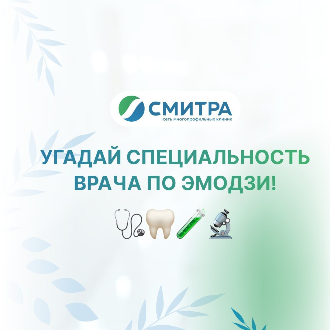 Дорогая семья, а как хорошо вы знаете наших врачей? Предлагаем небольшую игру — угадайте, кто скрывается за эмодзи! Это весёлый способ проверить свои знания и познакомиться поближе с теми, кто заботится о вашем здоровье каждый день. Листайте карусель и попробуйте угадать все четыре специальности. Пишите в комментарии свои ответы, а мы напишем - верно вы угадали или нет?