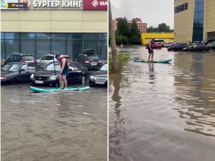 Мужчина проплыл на сапборде по затопленной улице в новосибирском Академгородке Ливень, обрушившийся на Новосибирск в субботу, 5 июля, снова выявил проблемы с ливневой канализацией. Целые улицы ушли под воду, и среди них – перекресток улиц Кутателедзе и Инженерной в верхней зоне Академгородка. https://academ.info/news/hcs-and-transport/47692/