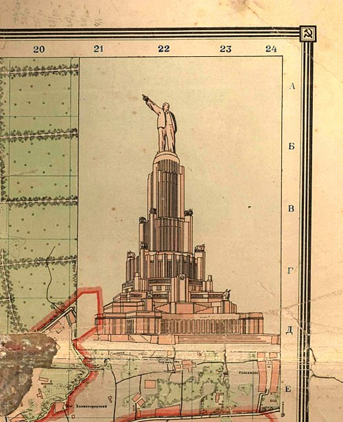 День добрый! В советской архитектуре есть наверное самый легендарный и незавершенный проект- Дворец Советов, который должен был находиться на месте снесенного храма Христа Спасителя на Красной площади. Множество коллективов СССР в 1930-х годах предлагали свои решения на трёх последовательных конкурсах. В итоге победил монументальный проект Бориса Иофана, который должен был стать объединением скульптуры и архитектуры в едином целом. В последствии проект дорабатывал коллектив с главархитекторами Щуко и Гельфрейхом, а по задумке его высота, вместе со статуей Ильича, должна была превысить высоту Эмпайр-Стэйт Билдинг в Нью-Йорке.