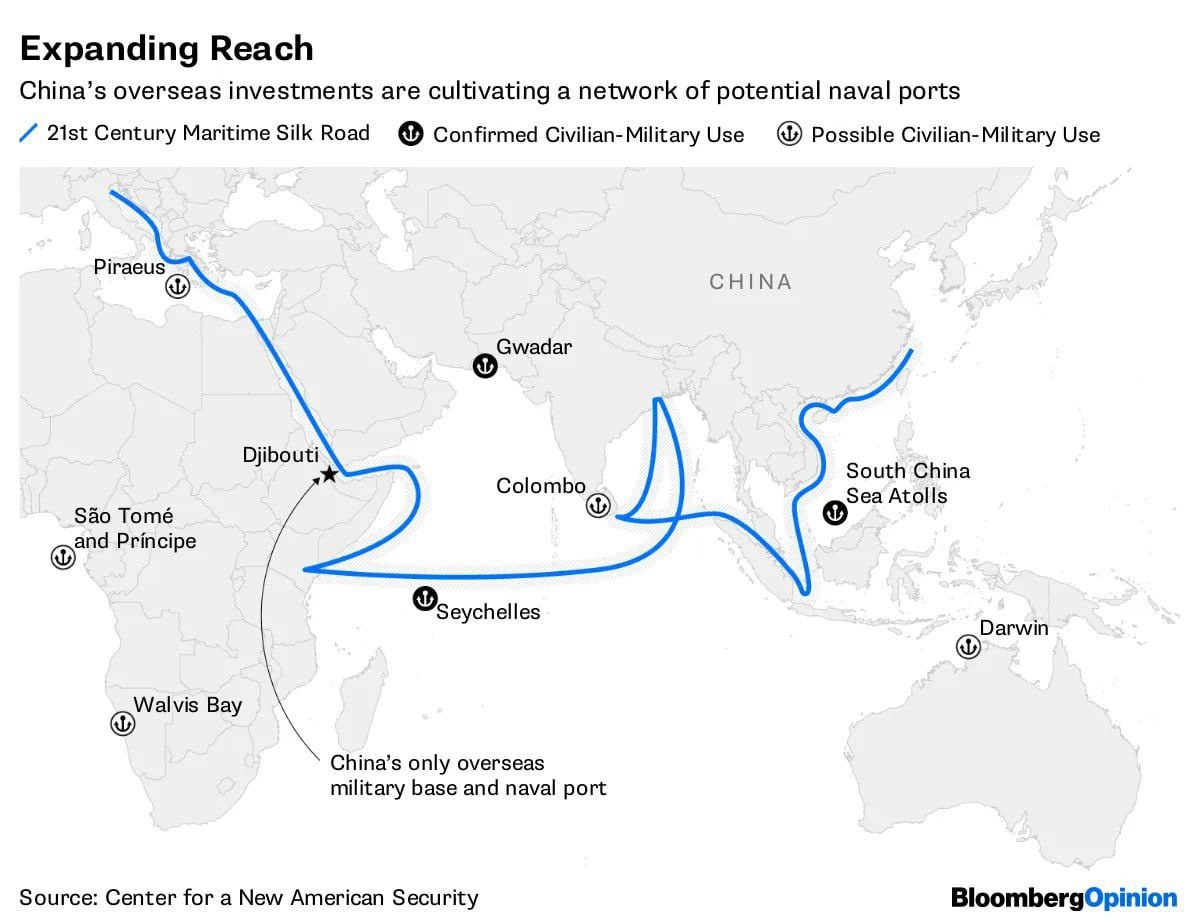 Доступ и влияние Пекина вдоль ОПОП через экономические проекты открывает путь к китайскому военному присутствию в этой стратегической оси, в т.ч. благодаря снижению американской вовлеченности и потере доверия к США. Так, за последние 20 лет объем китайской торговли с центральным регионом утроился. Китай, как крупнейший в мире импортер сырой нефти, получает 46% этого сырья из Передней Азии.