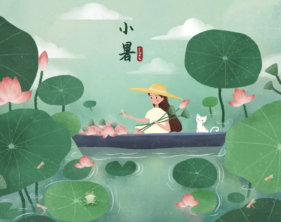 Малая жара (小暑, xiǎoshǔ) Начинающийся 7–8 июля. Это первый из двух самых жа́рких сезонов (小暑 → 大暑 "Великая жара"), знаменующий пик летнего зноя и подготовку к осени. Является 11-м по счёту в системе 24 сезонов китайского календаря 小暑大暑,上蒸下煮" — "Малая и Великая жара: сверху — пар, снизу — кипяток Когда Ковш [Большой Медведицы] указывает на Синь (辛, Металл), наступает Малая жара: в это время жарко, но ещё не предельно. Сезон Малой жары вступил в разгар лета, который совпадает с первым днем так называемых собачьих дней. В это время большинство районов на юге вступают в сезон с наибольшим количеством гроз. Юань Чжэнь, известный поэт династии Тан, писал в своем «Июньском празднике Малой жары»: «Внезапно налетает теплый ветер, и наступает Малая жара. Шелест бамбука предшествует дождю, а гром слышен, когда горы темные». Это ярко описывает день в сезон Малой жары, с дующими горячими ветрами, шелестом бамбука, темным небом и ревом грома, уникальная картина приближения горного дождя. В этот сез
