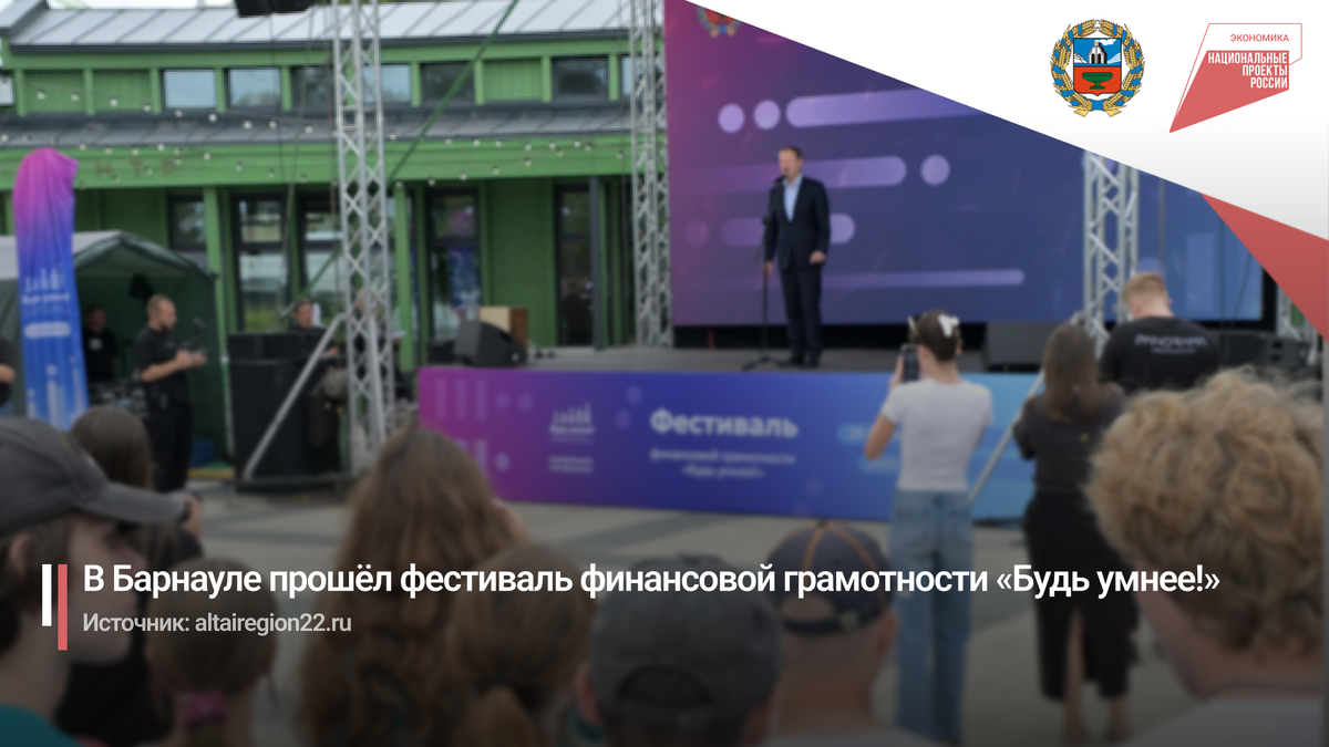 Фестиваль финансовой грамотности «Будь умнее!» состоялся в парке «Изумрудный» в рамках национального проекта «Эффективная и конкурентная экономика». Мероприятие собрало жителей всех возрастов и стало одним из ярких событий в просветительской работе региона по теме управления личными финансами. Участников ждали лекции, мастер-классы, квесты и розыгрыши призов. Все желающие могли не только получить полезные знания, но и проверить свою финансовую интуицию в интерактивных форматах. Отдельное внимание уделили вопросам защиты от мошеннических схем, формированию сбережений и грамотному пользованию банковскими услугами. Фестиваль объединил усилия краевых и федеральных структур: Министерства финансов Алтайского края, Банка России, налоговой службы, Роспотребнадзора, Минсоцзащиты, Алтайского центра финансовых исследований и других организаций. В этот день на площадке также работали волонтёры и представители учебных заведений. Студенты Финансового университета при Правительстве РФ приняли активно