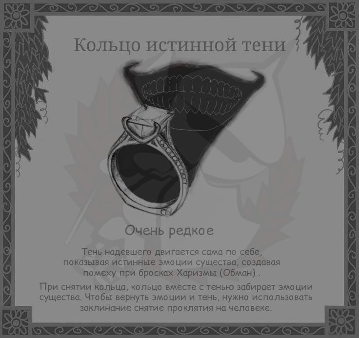 #миниистория@dndpotustoronu #предметы@dndpotustoronu Кольцо пляшущей тени, чтобы забирать эмоции. А если я надену это кольцо на неë? Нет, даже если оно сработает на неë, она не будет страдать это этого никак. За Фрирэн я должен доставить ей как можно больше проблем и неудобств.