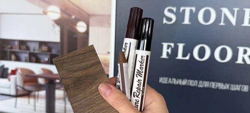 Чтобы замаскировать скол на ламинате, вам понадобятся специальные реставрационные маркеры и восковые карандаши. Их легко найти в интернет-магазинах, введя в поиск фразу "Набор для ремонта мебели и ламината". Для фиксации отреставрированного участка можно использовать мебельный лак.