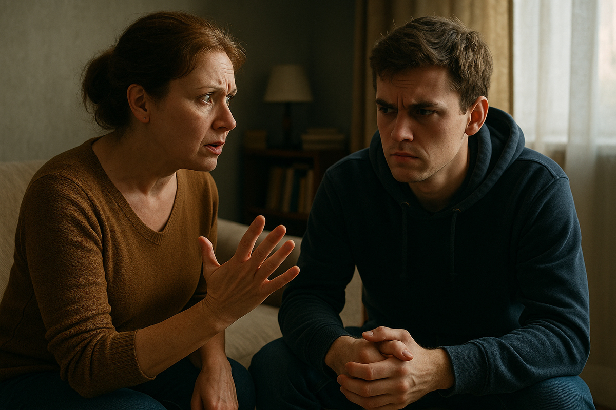 Передо мной сидел Максим — двадцатилетний лоб с пробивающейся щетиной, университетским значком на лацкане и детским беспомощным взглядом. Что-то щёлкнуло в груди, как перегоревшая лампочка. Звук тишины. Тридцать секунд я вдруг видела его со стороны — не моего мальчика, а постороннего мужика, который привык перекладывать ответственность. И свою совершенно чужую усталость.