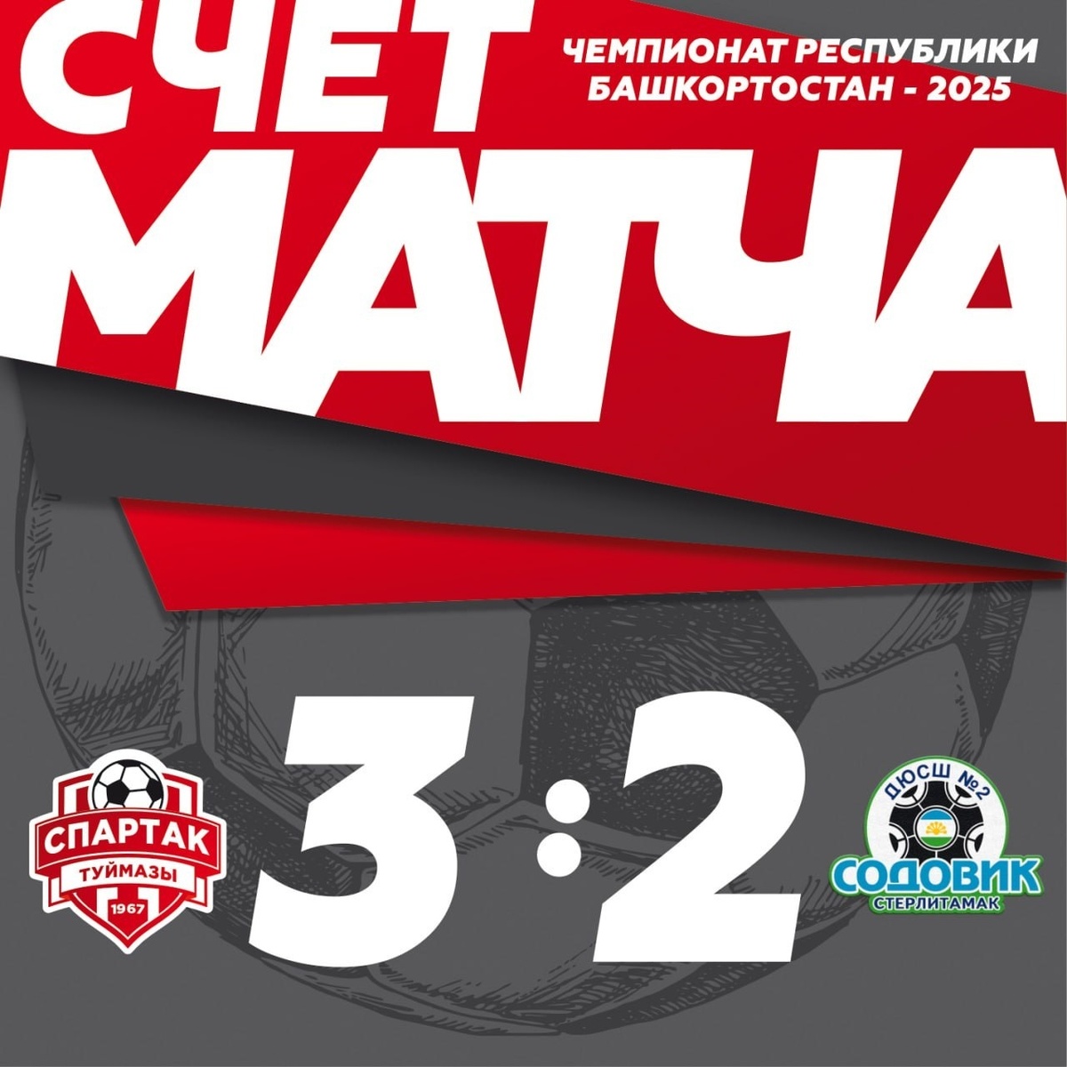 Со счетом 3:2 выиграли хозяева поля. 5 июля на стадионе в Туймазах в очередном матче чемпионата Башкирии по футболу встретились туймазинский «Спартак» и стерлитамакский «Содовик». Со счетом 3:2 выиграли хозяева поля - спартаковцы. Это седьмая победа туймазинской команды в чемпионате. «Спартак» идет на первом месте по количеству очков. Следующий матч состоится в среду 9 июля. «Спартак» принимает гостей из Салавата. Фото из соцсетей ФК «Спартак».