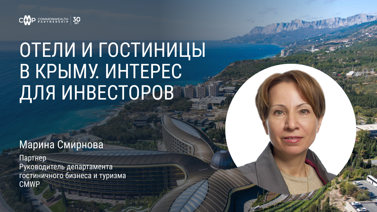 Марина Смирнова, партнер, руководитель департамента гостиничного бизнеса и туризма CMWP, рассказвает об инвестиционной привлекательности Крыма в сфере гостиничного бизнеса.