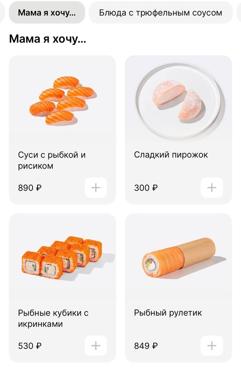 В приложении «Много лосося» появился детский язык. Вместо пафосных и стильных названий появились понятные «Суси с рыбкой и рисиком» и «Сладкий пирожок». В создании принимали участие дети, так что всё должно быть как надо. Всегда бы так писали. А то читаешь меню в каком-нибудь кафе или ресторане и что ни название блюда, то загадка для мозга. Что это, из чего приготовлено? Одному богу официанту известно. ☀️ Бизнес в Телеграм: Стратегии Продвижения ☀️