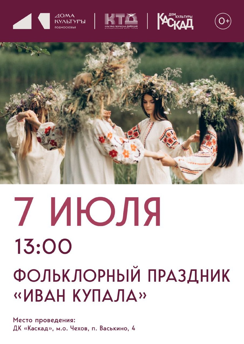 ✨ Фольклорный праздник "Иван Купала" Иван Купала — древний фольклорный праздник, который отмечается с 6 на 7 июля (по новому стилю) в честь летнего солнцестояния. Праздник наполнен песнями, плясками и народными гуляньями. 🌸Символами праздника являются цветы, вода и огонь, которые символизируют жизнь и очищение. Иван Купала остаётся живым фольклорным событием, сохраняющим связь с древними традициями и культурой славян. 🚫 Возраст: 0+ 📆 07.07.2025 🕛 13:00 🏢 ДК «Каскад» 📍 г.о.Чехов, п.Васькино, д.4 🪙 Вход свободный❗️ ⭐Разместить публикацию ⭐Поддержать канал голосом #webЧехов ✅ Мероприятия Чехов https://dzen.ru/id/66cc4b48e9ef144699238a51 http://vk.com/chekhov_events http://dzen.ru/chekhov_events
