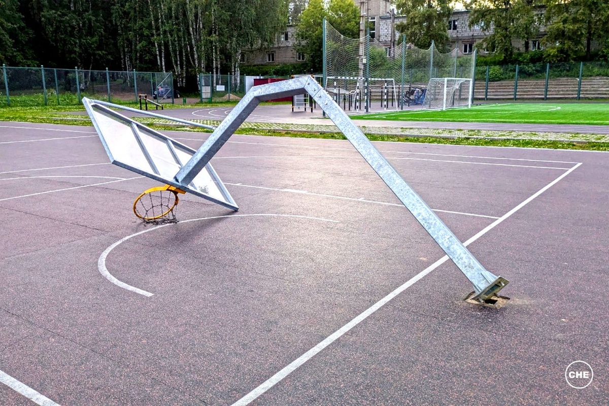 Баскетбольная стойка не выдержала напора спортсменов. На новой площадке на улице Островского требуется небольшой ремонт. Вероятнее всего, гарантийный: сама опора в порядке, подвело только крепление основания.