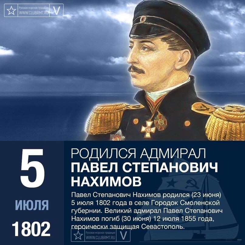 5 июля 1802 года родился Павел Степанович Нахимов, под командованием которого в ноябре 1853 года была одержана победа в Синопском сражении