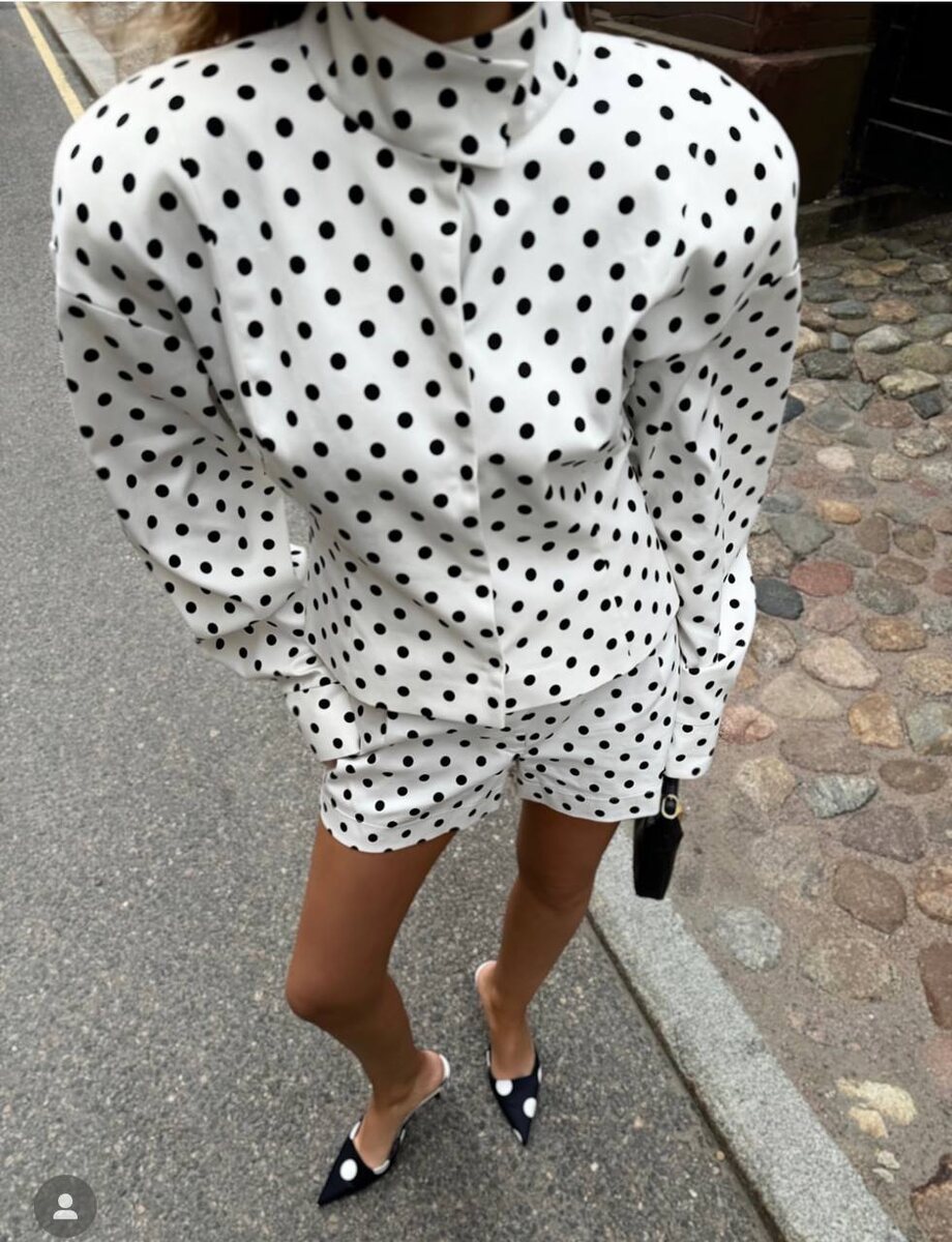 Когда одни переживают, что желтый цвет или горошек «сейчас у всех», я радуюсь, что можно купить такие крутые вещи сейчас, пока на волне их делают все бренды. Буквально год назад я искала клиентке костюм в горошек, она летела в Париж и хотела именно горошек. Я обыскалась, в итоге нашли, но не сравнится с тем, что делают сейчас, когда этот принт на пике. Мне безумно нравится этот жакет от бренда Acte: О-образная форма, подплечники, принт - просто вау ❤️🔥 Надо ли говорить, что вещь и через 5 лет будет выглядеть вау, когда трендовым станет какой-то другой принт? Не знаю только как останавливать себя от покупок… поэтому сублимирую тут 😂