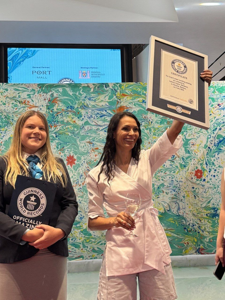 🇲🇩👩🏻🎨Художница из Молдовы Мила Куптор установила рекорд Гиннеса, в прямом эфире создав картину методом Эбру (живопись на воде) площадью 40м². Весь процесс происходил в ТЦ Port Mall. Достижение было официально признано судьёй Книги рекордов Гиннесса, прибывшим специально из Великобритании.