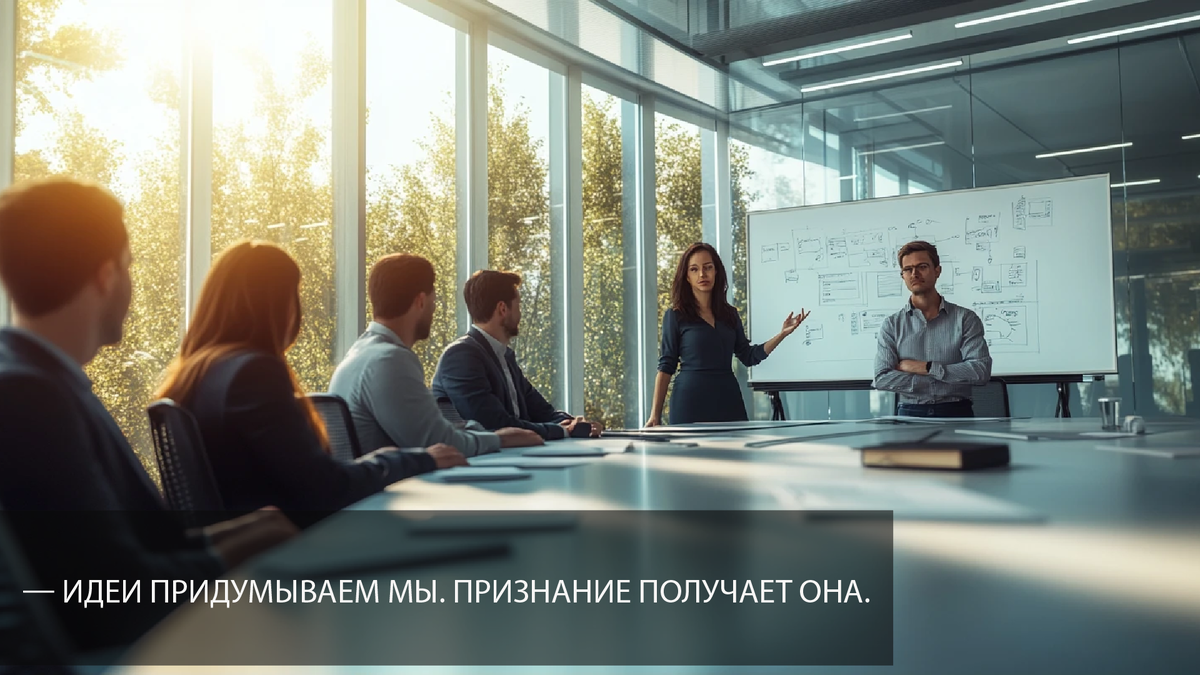 — Да брось! Весь офис видит, что ты ходишь кислый. Слушай, я понимаю — каждому хочется быть в центре внимания. Но ты должен понимать: у нас команда. И в команде важно уметь работать на общий результат.