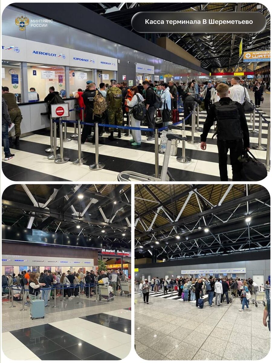 В ответ на пост Аэропорты возвращаются к нормальной работе, все рейсы выполняются по расписанию. Пассажирам задержанных рейсов предоставили еду, воду и места для отдыха. Сейчас очереди сохраняются лишь в кассах, сообщили в Минтрансе РФ. За последние сутки в Шереметьево задержали 241 рейс и 158 отменили; из Пулково не вылетели 87 самолетов; в Нижнем Новгороде отменили 12 рейсов. ⭕ Подписаться | Прислать новость | Буст