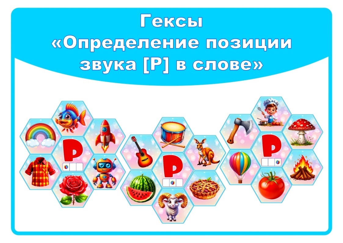 Гексы "Определение позиции звука [Р] в слове". Логопедическая игра
