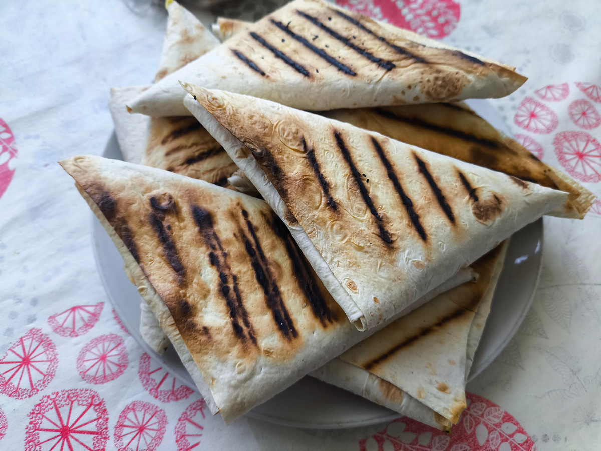 Вкусные и сытные треугольники (конвертики) из лаваша получаются , быстро и просто. Попробовала в гостях и решила приготовить самой. Делюсь с вами рецептом. Ингредиенты: Яйца отвариваем и натираем на терке, добавляем плавленный сыр, немного зелени и соли по вкусу. Всё хорошо перемешиваем. Приготавливаем лаваш. Разрезаем пласт на 3 полоски. Кладем сыра на уголок и складываем конвертики. Обжариваем их немного с двух сторон на сухой сковороде (я обжарила на гриль-сковороде). Приятного аппетита!