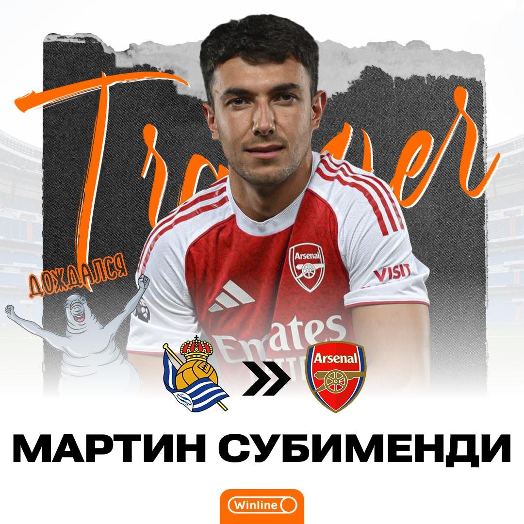 🏴✔️ Субименди наконец-то доехал до Лондона! Спустя триллион-квинтиллионов слухов и инсайдов Мартин перешел в Арсенал. Канониры нарисовали испанцу контракт на 5 лет, Сосьедад получит 65 лямов евро.
