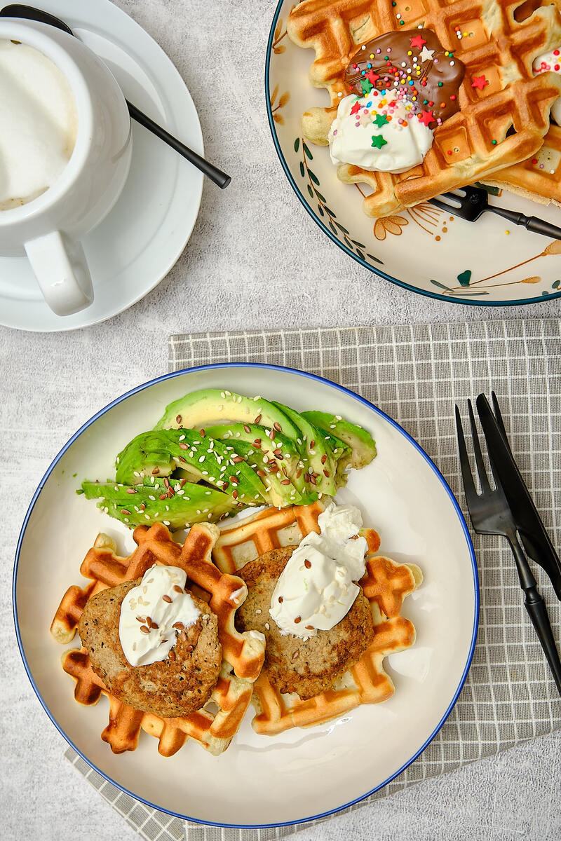 Может показаться, что вафли только для сладких завтраков. Но я готовлю с небольшим количеством сахара, поэтому мы используем как основу для сэндвичей и несладких начинок. Тут, например, вафли с авокадо, сметаной и печёночным оладьями (осталась парочка). А сладкие - с шоколадной пастой и сметаной. Из этого теста можно готовить на сковороде в виде панкейков. Больше рецептов вафель в подборке: Блины и оладьи: Другие блюда на завтрак: Приятного аппетита!