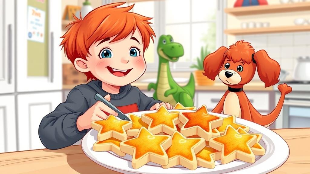 Звёздные сырники без жарки Лёва сегодня мечтает о космосе, а на кухне нашёл форму для печенья — в виде звезды! Персик прыгает вокруг, стараясь догнать свой хвост. — Сделаем сырники-звёзды — только без сковороды, чтобы было просто и безопасно! Понадобится: — творог (200 г) — йогурт (2 ст. л.) — мёд или сахар (1 ч. л.) — ваниль (по желанию) — овсяные хлопья (2 ст. л.) Лёва смешивает творог, йогурт и мёд в большой миске — мешать можно ложкой и даже руками! Добавляет овсянку и чуть ванили. Получается мягкая масса. Теперь, с помощью формочек, Лёва выдавливает из массы маленькие звёздочки на тарелке. Персик в восторге нюхает "орбиту". — Пусть сырники отдохнут в холодильнике полчаса, тогда станут вкуснее, — говорит Лёва. Через полчаса у всей семьи — космический десерт! А вы пробовали делать сырники без жарки? ⭐ Покажите свою галактику на тарелке!