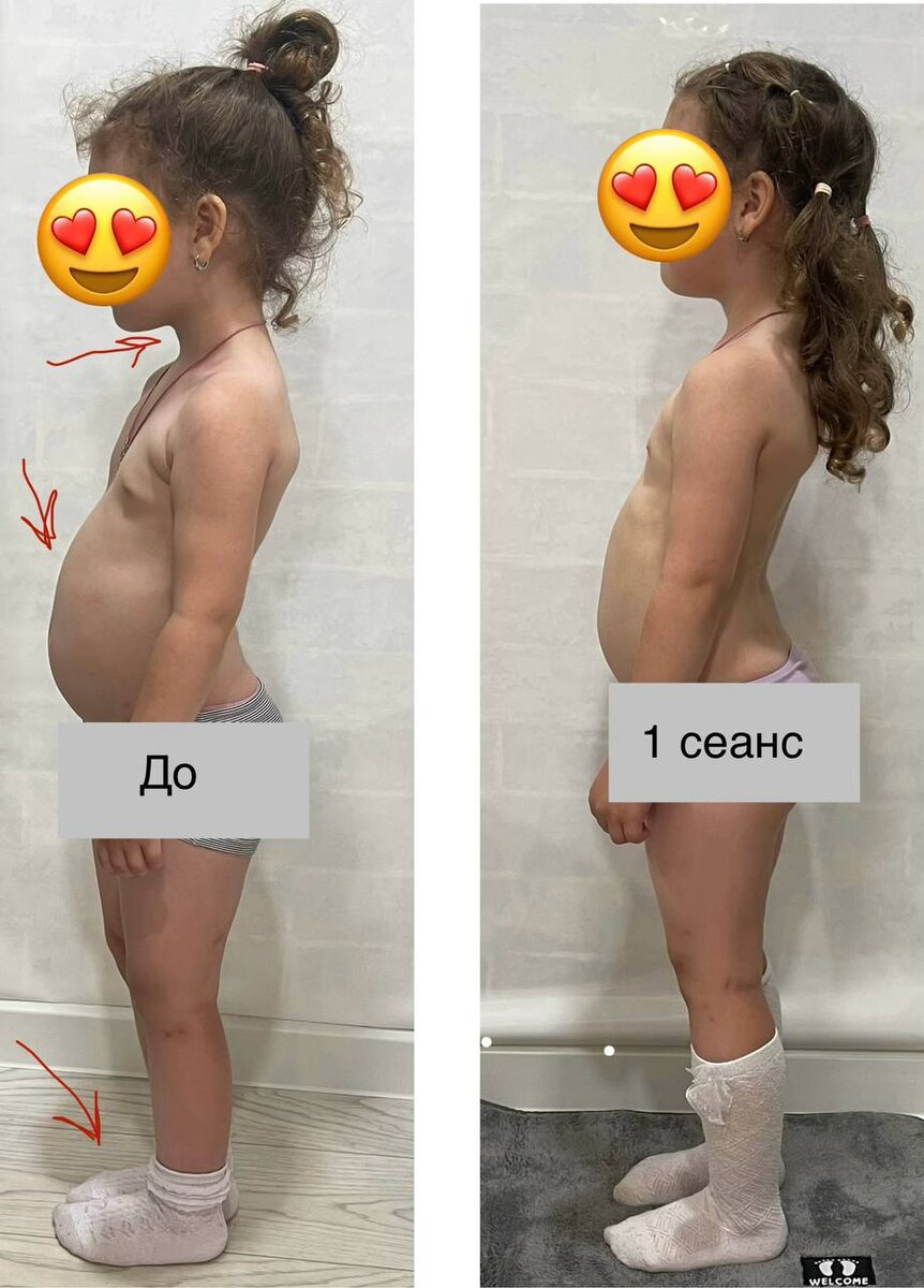 Результат 1 сеанса Сейчас много работаю с детьми. Практикую после обучения Девочка с ДЦП. плохо работает правая часть тела. Уже после 1 сенаса тело начало расправляться: животик уменьшился, положение головы изменилось, стопы расправились. продолжаем работу...