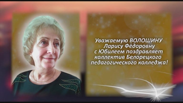 Уважаемую ВОЛОШИНУ Ларису Фёдоровну с Юбилеем поздравляет коллектив Белорецкого педагогического колледжа.