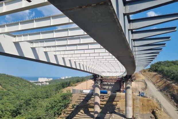 Строители на территории АР Крым закончили монтаж огромного воздушного моста, расположенного на объездной трассе курорта Алушта. О возведенном гигантском виадуке корреспондентов «РГ» уведомила пресс-служба строительной компании ВАД. Известно, что конструкцию общей длиной в 178 метров и массой не меньше 800 тонн поставили на 35-метровые опоры диаметром 1 метр. Для общей оценки обычный 9-этажный дом будет ниже такого виадука. Как уведомили представители фирмы-подрядчика, такого строения до 2025 года в Крыму просто не существовало и на июль этого же года оно пока в республике единственное. По уточненным данным вся строительная деятельность длилась не менее 60 дней, старт стройке был дан в апреле, а закончился в начале июля. Всего же четырехполосный обход получится дистанцией 7800 метров. Завершения проекта придется дожидаться до конца следующего года. Маршрут начнется от поселения Изобильное рядом на въезде в Алушту и завершится рядом с шоссе Алушта — Ялта. Как только все работы окажутся з
