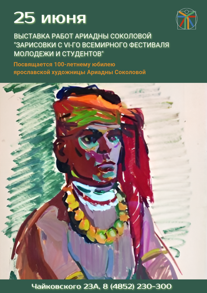 В 1957 году в Москве в течение двух недель проходил VI Всемирный фестиваль молодежи и студентов, ставший во всех смыслах значимым и взрывным событием для советских юношей и девушек и запомнившийся атмосферой свободы и открытости. За время его проведения Ариадна Соколова создала уникальную серию портретов участников Фестиваля из разных стран мира, которая была представлена на итоговой художественной выставке.