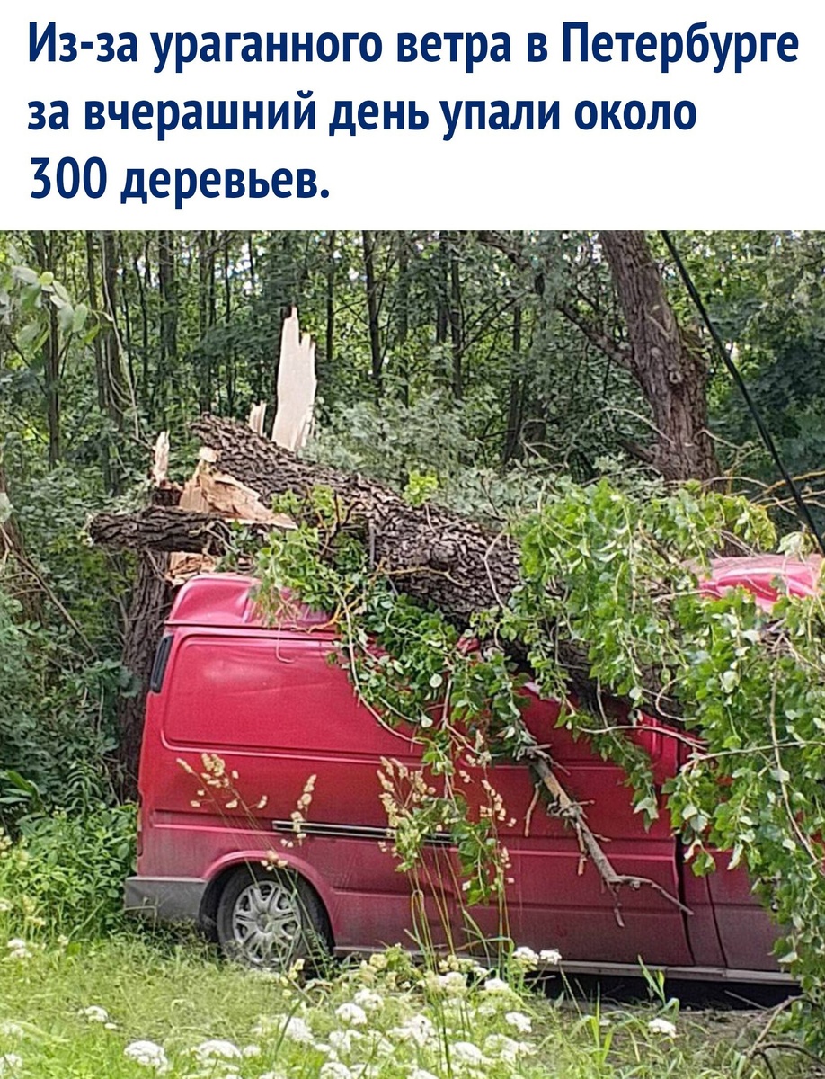🌩 Итоги прошедшего шторма В результате падения деревьев пострадали пять человек. Также повреждения получили десятки автомобилей. В Сосновом Бору дерево разбило окно в квартире. В Ботаническом саду вследствие шторма обвалился клон, посаженный в 1934 году. В Санкт-Петербурге мужчина получил удар лицом о дверь грузовика из-за резкого потока ветра. Другие новости