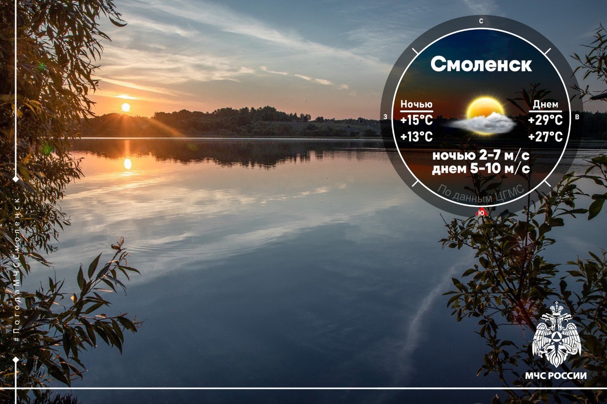 🥵Жаркий старт недели В понедельник, 7 июля, в Смоленской области установится по-настоящему летняя и комфортная погода. Ожидается переменная облачность без существенных осадков. Ветер южного направления будет дуть ночью со скоростью 2–7 м/с, а днем — 5–10 м/с. 🌡Тёплые воздушные массы, поступающие с юга, обеспечат повышение температуры воздуха. Ночью по области ожидается +11…+16°C, в Смоленске +13…+15°C. Днем температура повысится до +25…+30°C по области и до +27…+29°C в городе. По традициям наших предков в ночь на понедельник отмечается праздник Иван Купала — одно из самых ярких и древних событий лета. В старину наши предки старались успеть искупаться в водоемах до захода солнца, считая, что купаться можно без опасений вплоть до 2 августа. Тем, кто планирует отмечать праздник у воды, МЧС России настоятельно рекомендует: ⭕️ купайся только в специально оборудованных и разрешённых местах; ⭕️ не заходит в воду в состоянии алкогольного опьянения; ⭕️ не оставляй детей без присмотра, даж
