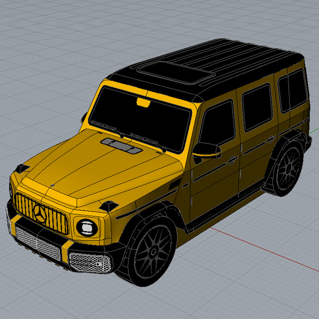 Как мне казалось, Гелендваген должен был быть непременно черным. И я его так и раскрасил, ориентируясь на те фотографии, которые мне заказчик указал в качестве примера правильной модели. Только вот окна вызывали у меня вопросы. Т.к. стекла будут непрозрачными, то нужно выбрать для них подходящий цвет ткани.