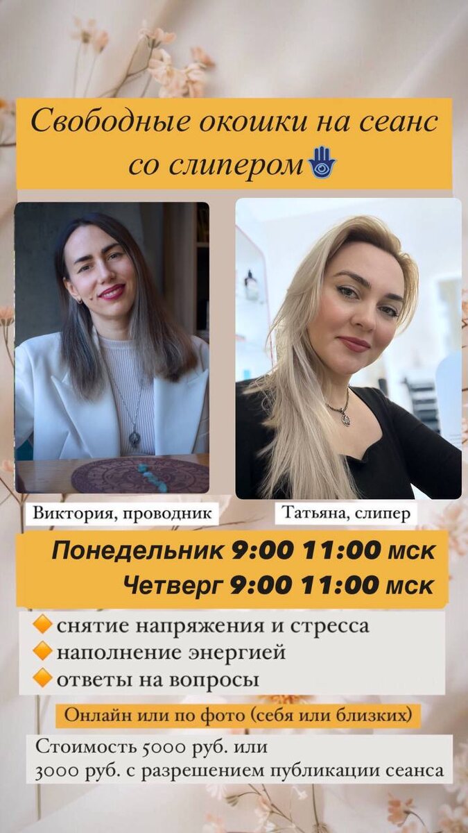 ✅ Получите ответы на любые 5 вопросов (отношения, финансы, здоровье, реализация, семья, одиночество, поиск своего пути и т. д. ) ✅ Узнаете свой потенциал, который был заложен вашей Душой и как его реализовать ✅ Снимите страхи, тревоги, депресссивные состояния ✅ Прочувствуете как работают ваши энергетические центры, почему образуются блоки и куда утекает энергия ✅ Получите очищение от блоков и негативной энергии, наполнение и прилив новых сил Сеанс проходит онлайн без погружения в гипноз. Длительность до 3х часов. Мы сможем вам помочь, приходите! ♥️