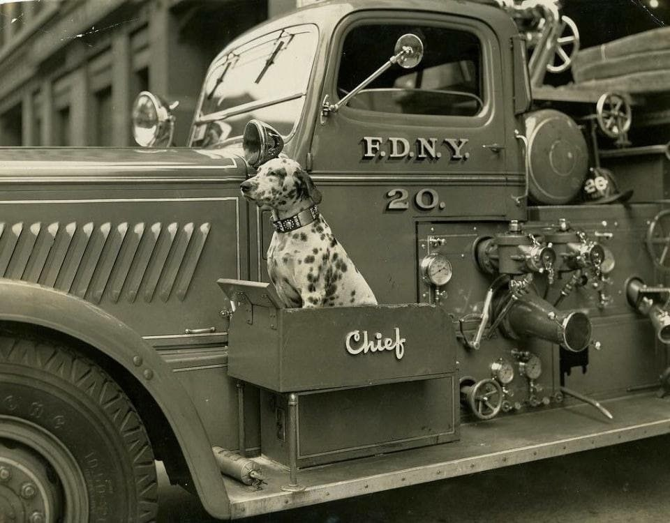Эх, гляди-ка, какая культура обращения с животными! В Америке уже в 1928 году для служебной собаки было предусмотрено штатное место в пожарной машине. И ведь это не просто для красоты. Чаще всего в пожарных частях служили далматинцы — они исторически бежали впереди конных упряжек, расчищая дорогу, а потом сторожили экипаж и лошадей. Традиция перешла и на автомобили.