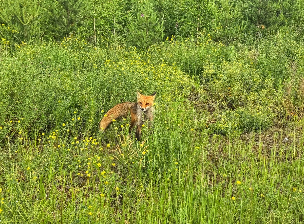 Прикормили лису на смотровой площадке - теперь она здесь постоянный гость