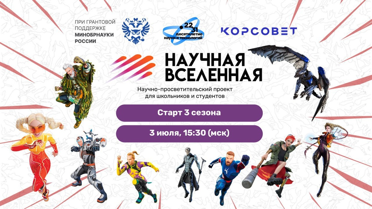 💙Получи шанс отправиться на космодром: старт 3-го сезона конкурса «Научная Вселенная»! 💙Официально стартовал 3-й сезон научно-просветительского конкурса «Научная Вселенная». Проект направлен на привлечение талантливой молодежи в сферу научных исследований! В новом сезоне участников ждут 9 тематических треков, соответствующих направлениям научно-технологического развития Российской Федерации: 💙«Биоэкономика»; 💙«Беспилотные авиационные системы»; 💙«Генетика и персонализированная медицина»; 💙«Инновационное проектирование»; 💙«Искусственный интеллект и большие данные»; 💙«Новые материалы и химия»; 💙«Квантовые технологии»; 💙«Научная фантастика»; 💙«Освоение космоса». 💙18 лучших участников конкурса смогут отправиться на космодром и получить уникальный исследовательский опыт! Успей подать заявку до 24 августа 2025 года. 💙Проект реализуется при грантовой поддержке Минобрнауки России в рамках инициативы «Наука побеждать» Десятилетия науки и технологий, объявленного Президентом Росс