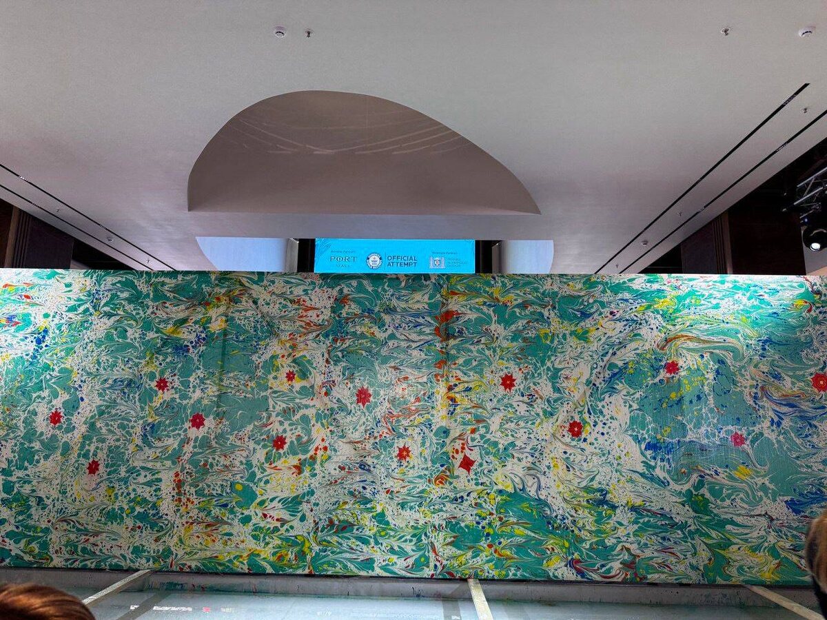 Художница из Молдовы Мила Куптор установила рекорд Гиннеса, нарисовав картину методом Эбру(рисование на воде) площадью 40м