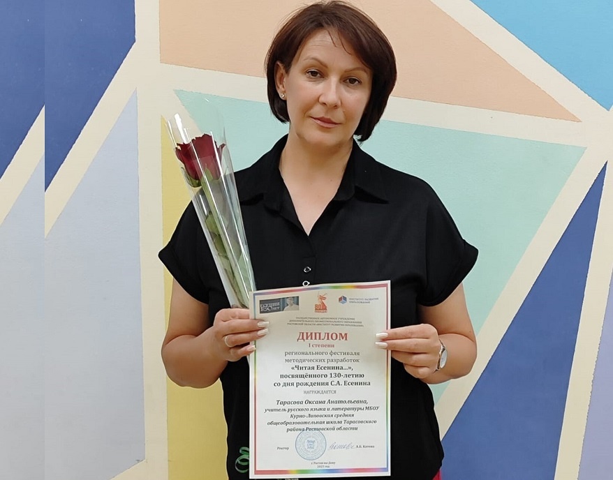 Педагог Курно-Липовской школы Оксана Тарасова стала победителем фестиваля «Читая Есенина…»