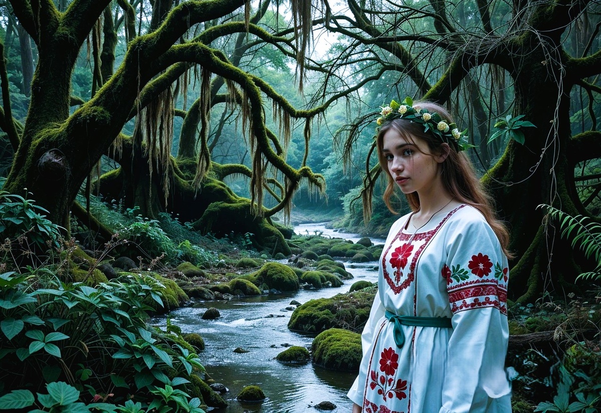 Так вот, когда мы с мужем знакомились с новой средой обитания и объезжали окрестности, овраг притянул мой взгляд. И как будто голос позвал, такой смешанный с шумом листвы. «Иди ко мне…». По коже пробежал холодок и мурашки выступили, а было жарко. Но раз зовут, надо идти. Я попросила мужа подождать и полезла в овраг. Заросли крапивы, поваленные деревья, заросли кустов и ручеёк журчит. У раскидистого старого дерева, покрытого мхом, стоит очень молодая девушка, лет 12–14, в странной одежде, бело-красное платье-рубаха с вышивкой. Волосы распущены, а вокруг головы венок из каких-то трав. Стоит и молчит. Кожа бледная с зеленоватым отливом, на фоне белой рубахи кажется прямо оливкового цвета. Прям кикимора. Я к ней приближаюсь, а она как будто удаляется, знаете, когда время растягивается. Шагаю, а расстояние не уменьшается. Я остановилась и говорю: «Привет, это ты меня звала? Кто ты?» Она стоит, смотрит и не моргает. И тут в голове всплывает: «Я Тикшана». Ну, думаю, всё, перегрелась! Озираюсь назад, а когда поворачиваюсь, дерево есть, а девушки нет. Иду к дереву, теперь подхожу спокойно. Девушки нет. Разворачиваюсь назад и лезу по зарослям к мужу. Он стоит на дороге, ждет, пока я там налазаюсь. Вылезла вся обкрапивленная, кроссовки в грязи, руки в царапинах от кустов. Он посмотрел на меня, тяжело вздохнул, мол, что с чумурудной возьмешь. И спросил: «И что там?» Я вздохнула и призналась: «Кикимора». Муж у меня человек не впечатлительный и в кикимор не верит. Поэтому сказал: «Хватит дурью маяться, домой поехали». Я села в машину, и мы отправились к дому. Вечером планировались шашлыки, соседи в гости должны прийти. Поэтому мы быстренько разожгли мангал, который собрали из старых кирпичей, и стали накрывать на стол. Пришли гости, сидим жарим мясо. Муж пошел за дровами, а я решила поучаствовать и мясо перевернуть и, конечно же, схватилась голой рукой о раскаленный шампур, одновременно приложившись голой ногой к раскаленному кирпичу. Чувство самосохранения у меня отсутствует напрочь. Как я нечаянно собрала паровую бомбу, можно прочесть в статье о соляном мыле. https://dzen.ru/a/aGoUV0Ip_Q9fjKuC