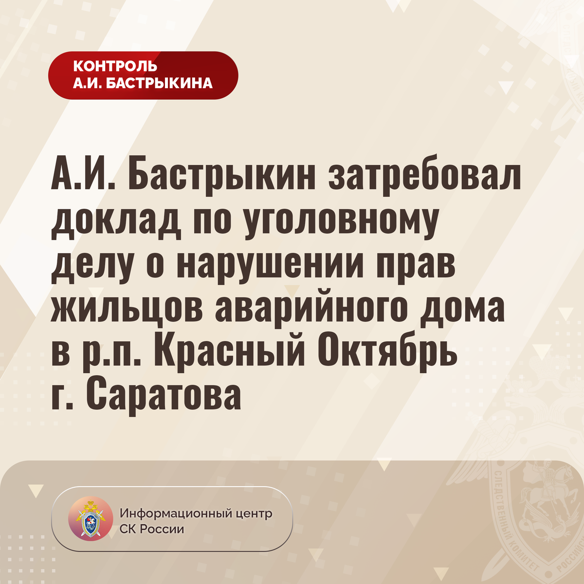 А.И. Бастрыкин затребовал доклад по уголовному делу о нарушении прав жильцов аварийного дома в р.п. Красный Октябрь г. Саратова