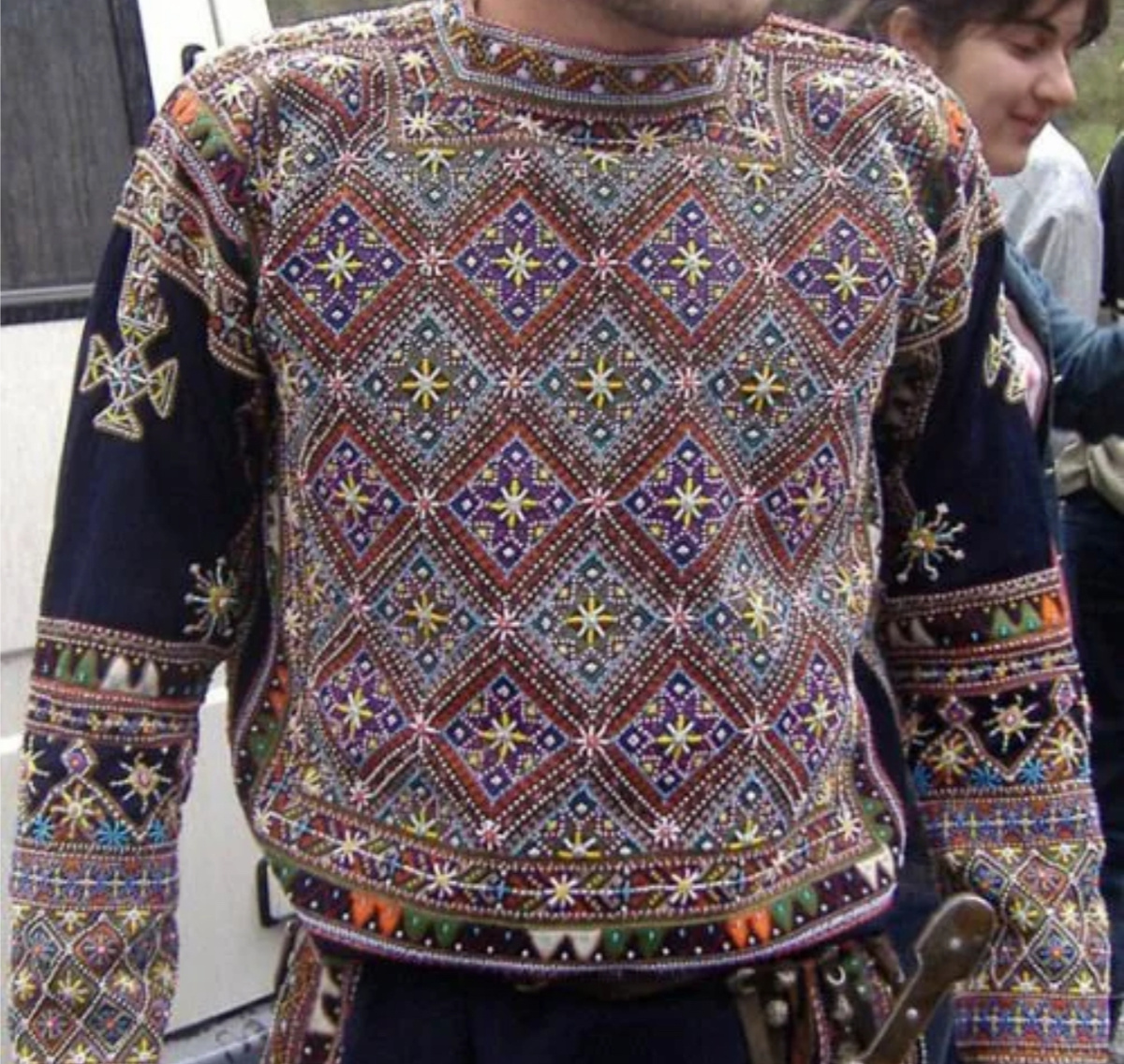 Когда уходит песня, ее можно спеть заново. Когда исчезает ткань времени — вышивка, вроде бы, остается. Но что делать, если исчезают руки, знавшие, как ткать смысл в нить? Хевсурская вышивка начрела — не просто красивый узор, не просто женское рукоделие. Это разговор поколений, зашифрованный крестами и цветами. И он чуть было не умолк навсегда. Хевсурети — суровый горный край на севере Грузии. Здесь не выживешь без силы — и без красоты. Хевсуры — народ суровых гор, о которых слагают легенды, не преувеличивая ни на йоту. Им не нужно было придумывать героев — они были ими по праву рождения. В хевсурском доме всегда лежал кинжал. Не для нападения — для чести. Женщина носила одежду с таким же достоинством, как мужчина меч. Здесь не делили на «слабый» и «сильный» пол — делили на верных и предателей. А предавать было нельзя ни Родину, ни слово, ни песню. Они всегда стояли особняком. Даже в грузинской мозаике народов, где каждый этнос — как цветной камень, хевсуры — это гранит с огненной прожи