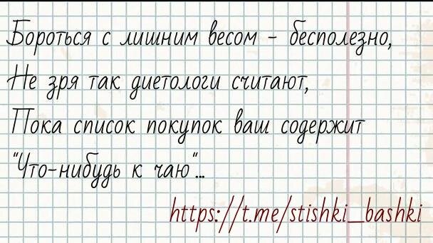 Про диету #купитькчаю #стишкиизбашки Стишок каждый день для настроения @stishki_bashki 📹 - видеостишки тут 👈 🙊 - а тут можно комментировать 👈 Поделитесь стишком с друзьями