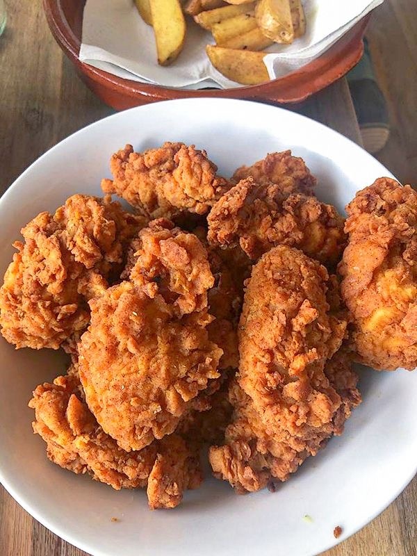 в ресторане ты платишь от 300 ₽ за порцию острых куриных крылышек. и каждый раз думаешь — ну почему дома не получается так же? секрет есть. и он не в 11 специях, а в точных шагах, времени и температуре. читай внимательно — и ты сделаешь KFC-курицу дома, только без лишнего жира и очередей. 🟥 ингредиенты на 2–3 порции: • куриные крылышки (или бёдра) — 700 г • кефир или простокваша — 250 мл • соль — 1 ч. ложка • паприка — 1 ч. ложка • острый перец (молотый чили) — ½ ч. ложки • чесночный порошок — 1 ч. ложка • лук сушёный (по желанию) — ½ ч. ложки • мука — 150 г • крахмал (кукурузный или картофельный) — 50 г • яйцо — 1 шт. • масло для жарки — 500 мл (если жарить во фритюре) 🟨 1. маринад — залог вкуса в глубокой миске смешай: • кефир — 250 мл • соль — 1 ч. ложка • паприка + чили + чесночный порошок — по рецепту выложи курицу, перемешай, накрой крышкой и убери в холодильник минимум на 3 часа, а лучше на ночь (8–10 часов). так мясо станет невероятно мягким внутри. 🟨 2. п