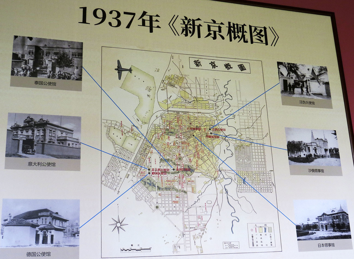 Странным образом мне в кадр не попал офис "Общества Согласия" (позже перешедший КПК, а ныне занятый всякой всячикой) - он небольшой, невзрачный и скрыт за деревьями. И, как я понимаю, примыкал к снесённой в 1996 году мэрии Синкё (1932-33), первому зданию Маньчжоу-го в городе, а потому известному как Первый зал: