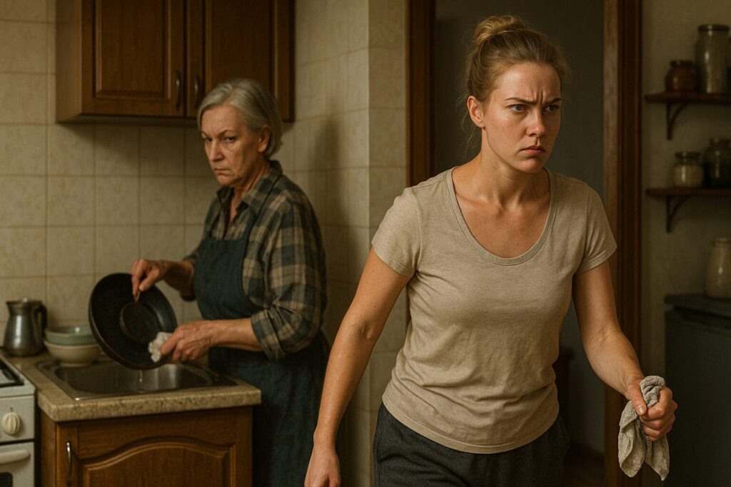 Свекровь Валентина Петровна стояла у раковины, старательно оттирая уже чистую сковородку. Спина прямая, движения резкие — как будто воевала с жиром, а не мыла посуду.