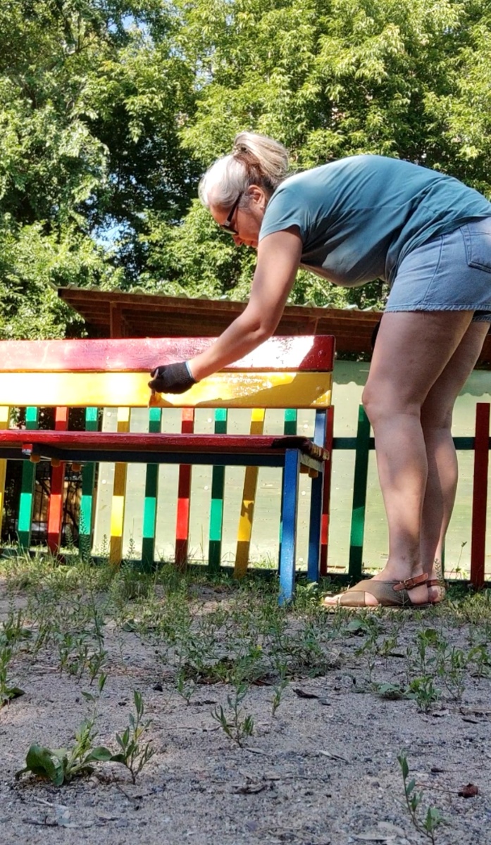 В группе самой младшей дочки, понадобилось покрасить заборчик для детей.