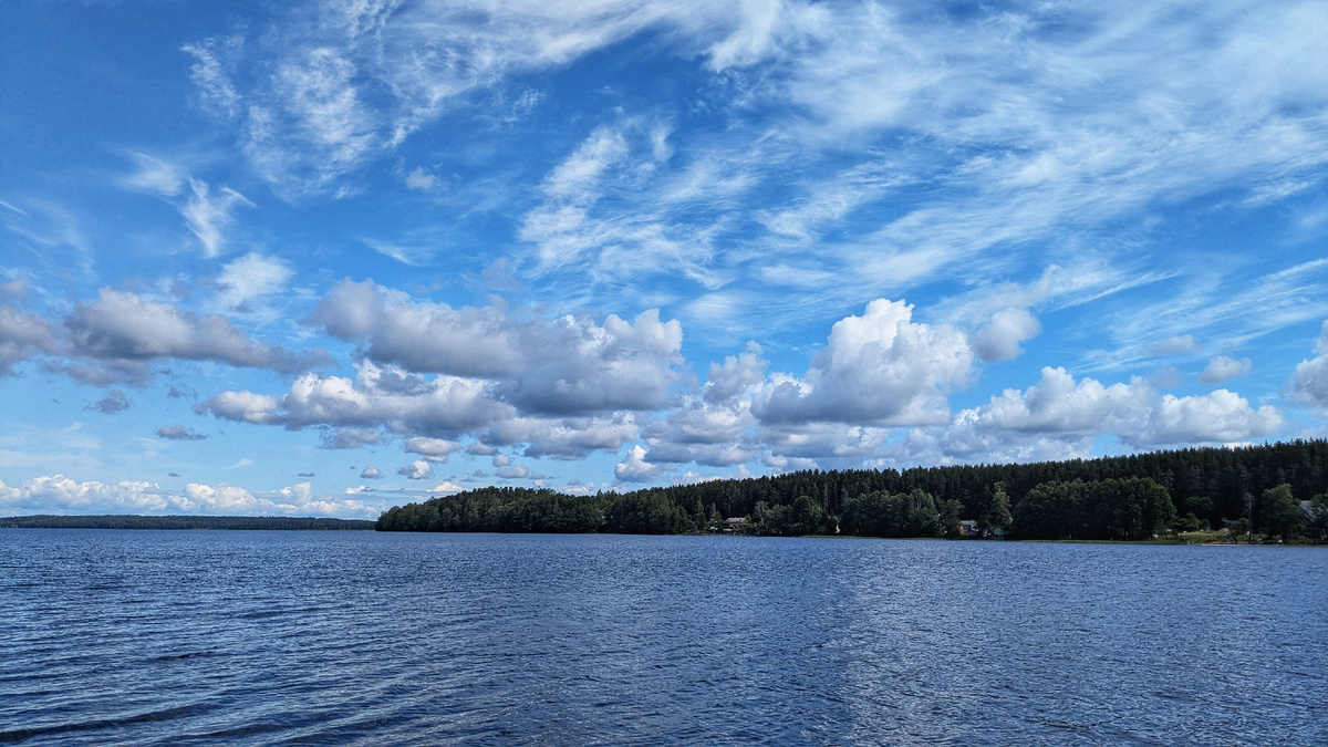 05 - 06.07.2025 Друзья, приветствую вас на канале "Счастлива по собственному желанию". В эти выходные мы успели съездить в лес. Набрали немного лисичек и подосиновиков, особо похвастаться нечем. Даже не сфотографировала. Зато сфотографировала прекрасное озеро Пионерское и облака над ним. Попробовала сделать пиццу по новому рецепту - на жидком тесте. Покупала кефир для окрошки, и у меня его много осталось. Тесто: 400 мл кефира, 2 яйца, соль, сахар по вкусу, пол-пакетика разрыхлителя и муки примерно 2 стакана, чтобы получилось тесто как на оладьи, похожее на густую сметану. Этого теста как раз хватает на 1 стандартный противень. Смазываем противень маслом, выливаем тесто и разравниваем ложкой. Затем смазываем кетчупом, и далее все как с обычной пиццей (ну, или пирогом в стиле "пицца"). В этот раз добавила в начинку жареные лисички. В духовку на 40 минут на 180 градусов. Я чуть передержала, сыр слишком зарумянился. В целом неплохо, но все-таки на творожном тесте мне нравится больше. Мужч