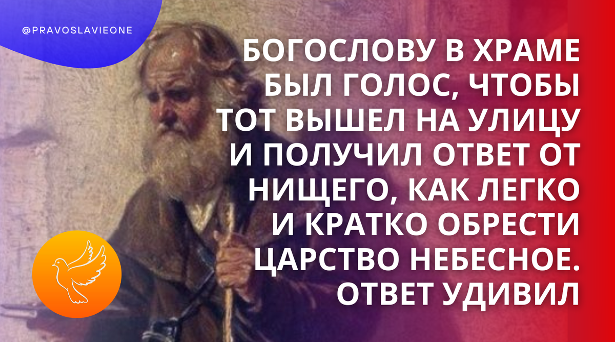 Богослову в храме был голос, чтобы тот вышел на улицу и получил ответ от нищего: как легко и кратко обрести Царство Небесное? Ответ удивил