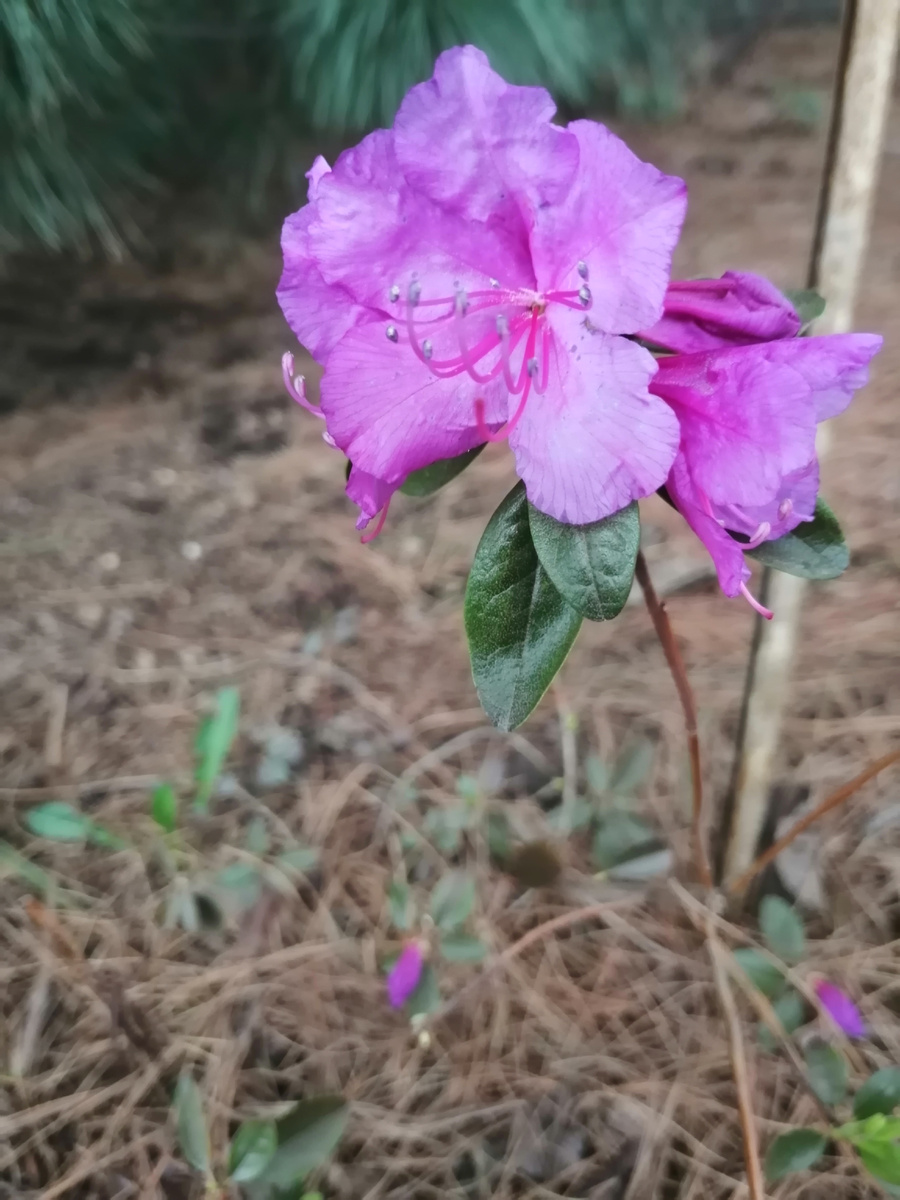 Надо учитывать, что он полулистопадный. То есть листья до конца не сбрасывает, но во что превращаются эти листья после зимы - это тема отдельного обсуждения. Несведущий человек, глядя на свернувшиеся в трубочки коричневые ошметки обычно впадает в ступор и решает, что рододендрону пришел конец. Но нет - это его способ сохранить часть листьев при низких температурах. Так что когда он цветет, старые листья обычно еще не полностью вернулись в нормальное состояние, а новые еще не распустились. Получаем цветение на почти голых ветках. У взрослого куста это выглядит ошеломляюще, у личинки смешно. У меня рододендрон Ледебура сидит под сосной кедровой, получает утреннее солнце и, по всему судя, жизнью более-менее доволен. К счастью, у рододендронов компактная и поверхностная корневая система, так что кедр его не давит, как большинство других растений рядом (калину он, например, почти добил) Из важных особенностей ухода - для того, чтобы растение заложило цветочные почки на будущий год, оно нуждается в хорошем поливе. А вот тут засада - кедр очень быстро сушит почву, так что поливу рододендронов в конце весны - начале лета я уделяю отдельное внимание.