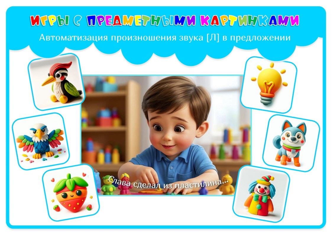 Пишу вам из уютного уголка под названием Автоматизация звука [Л]. Здесь солнечно, дети говорят фразы, а не наборы слов, а пособия радуют не только функциональностью, но и видом. И вот вам моя находка недели, месяца, а может и всего учебного года: 🟡 «Игры с предметными картинками. Автоматизация звука [Л] в предложении»